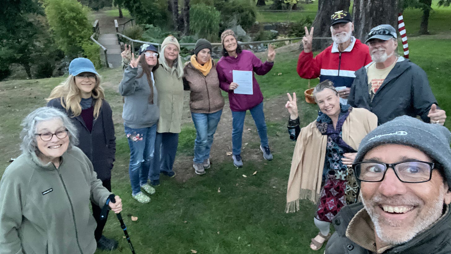 Eleven of us attended the September Peace Gathering, three local loving and present Vietnam vets, a Sufi man who traveled from Illinois, a filmmaker working on a project in B.C. and a beautiful comedian and compassionate counselor who contributed her gifts at the Dove House groups and Recovery Cafe right here in Port Townsend.